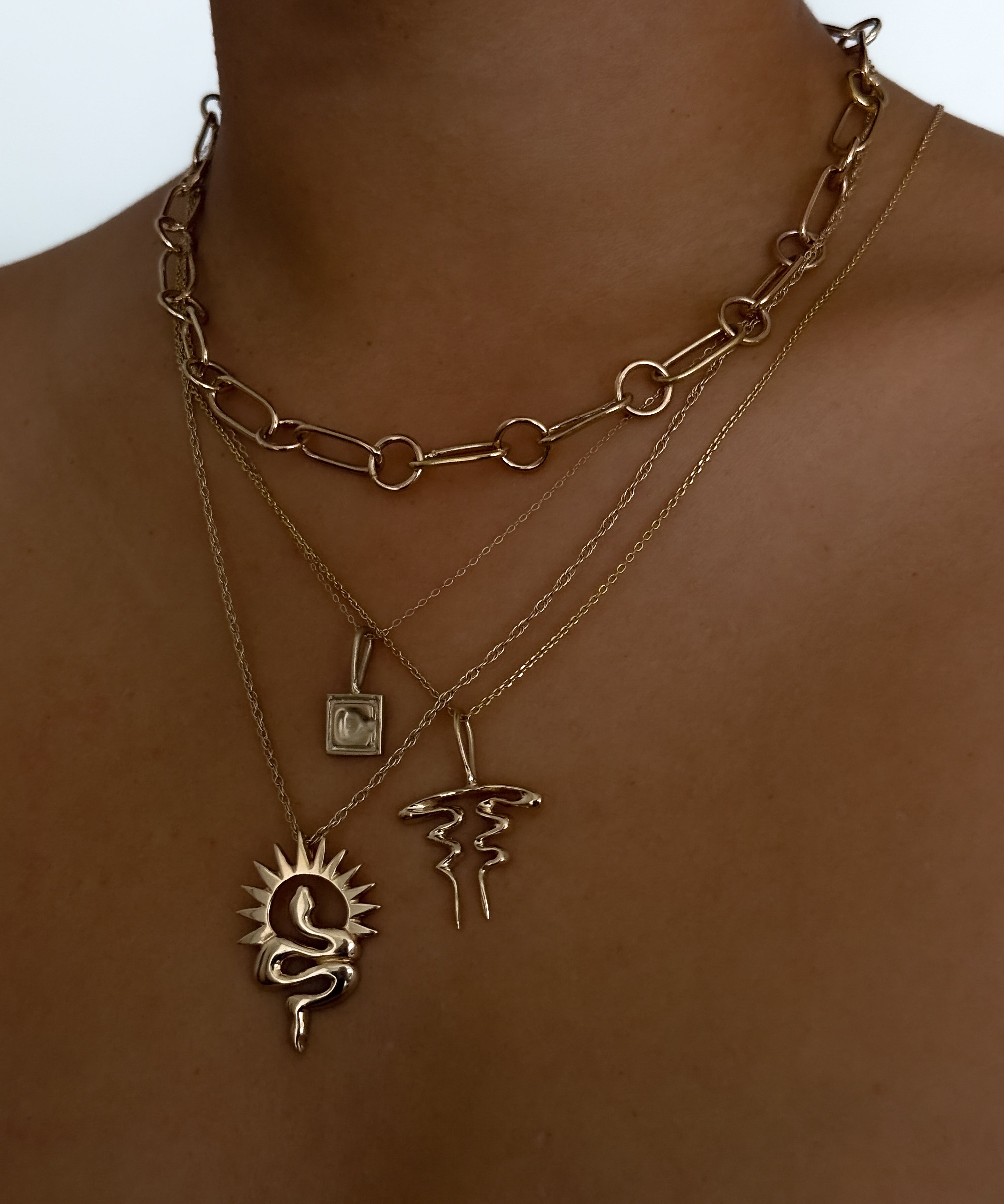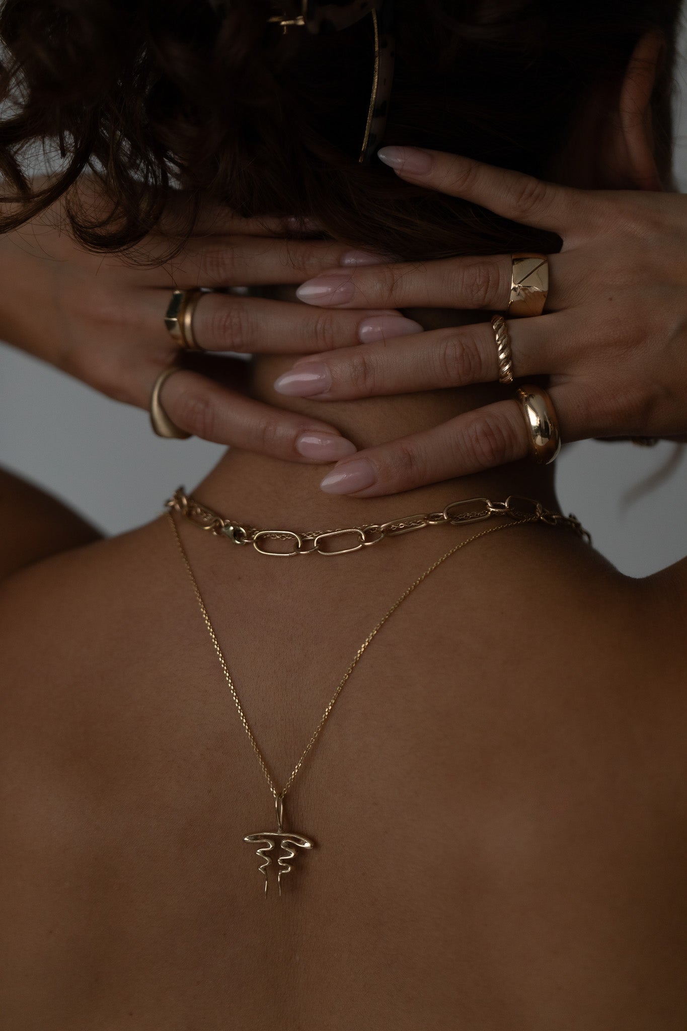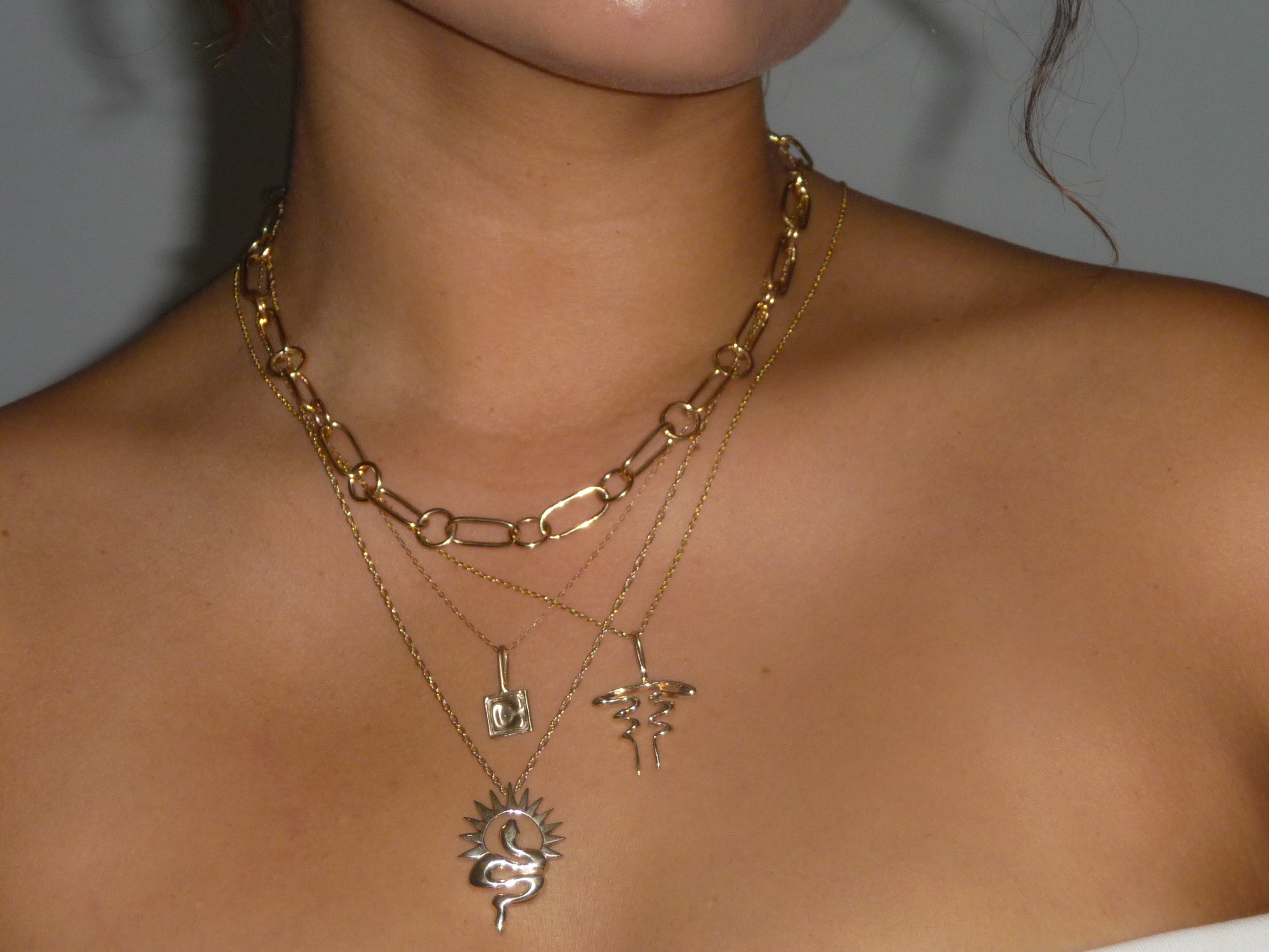 A hand sculpted pieced that will layer into any existing jewelry stack.  This unique, solid 14k yellow gold, handcrafted necklace can elevate your everyday.